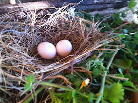 So you might remember in September when I discovered a mama dove in residence in my patio flower pots. Well, a few days ago I saw a twig pile in one pot. I removed it once, twice, three times. I wanted her to build her nest UP in my roof rafter. She didn't take the hint. The fourth day when I went to investigate I saw mama dove sitting serenely in the foliage. And when she was not nesting I took a quick peek and saw a pair of eggs so I guess we'll see twins again soon. And she lets me water the plants around her. She just watches calmly.